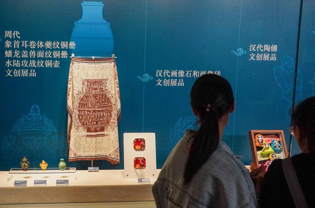4月29日,观众在参观四川博物院的文创作品。