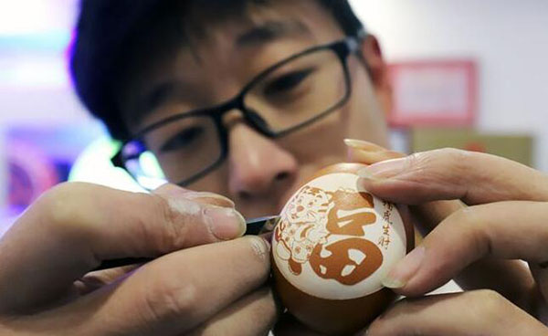 “潍坊蛋雕”传承人王子敬以“福虎生财”为主题,在精挑细选鸡蛋壳皮层上,创作出栩栩如生的“福虎”“生财虎”“生肖虎”等蛋雕作品。