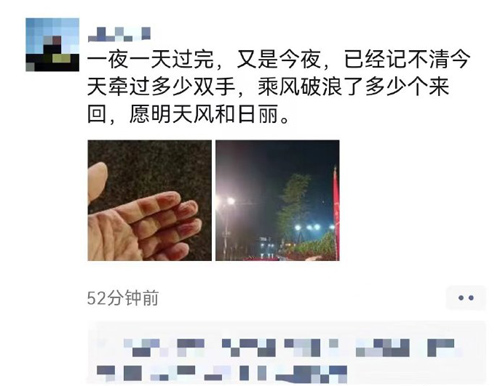 “一夜一天过完,又是今夜。已经记不清今天牵过多少双手,乘风破浪了多少个来回,愿明天风和日丽。”