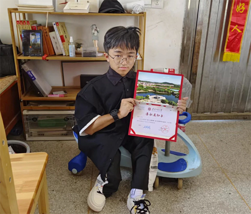 双腿不能正常行走,但从未放弃追求梦想的脚步。
