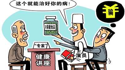 近日有媒體報道,網(wǎng)上有人打著中醫(yī)的幌子賣課圈錢。那些自稱“神醫(yī)傳人”“國醫(yī)名師”的講師,根本沒有培訓(xùn)資質(zhì)。養(yǎng)生保健“坑老”騙局其實并不新鮮。坑騙的一大“訣竅”是,渲染和利用老年人的健康焦慮。針對??永先说摹梆B(yǎng)生騙局”,必須持續(xù)加大打擊力度,進一步加強保健品監(jiān)管。