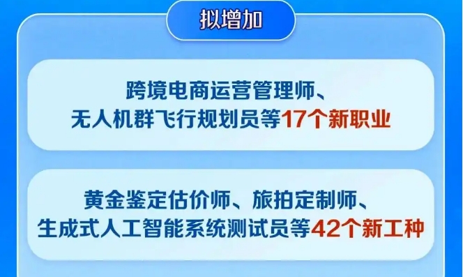 近日,人社部宣布擬新增跨境電商運營管理師、無人機群飛行規(guī)劃員等17個新職業(yè),以及生成式人工智能系統(tǒng)測試員、睡眠健康管理師等42個新工種。這些新職業(yè)、新工種既是產(chǎn)業(yè)變革的縮影,也是對社會高質(zhì)量發(fā)展需求的生動回應(yīng)。新職業(yè)持續(xù)涌現(xiàn),開啟了時代創(chuàng)造的無限可能。面對職業(yè)選擇,不少年輕人主動擁抱變化,抓住新賽道。