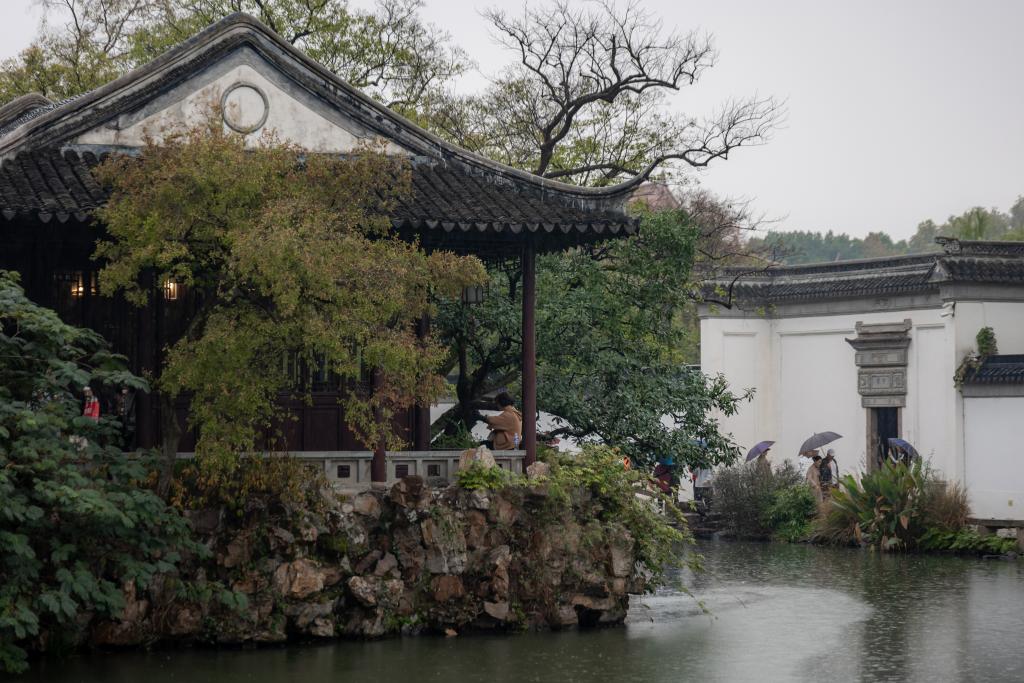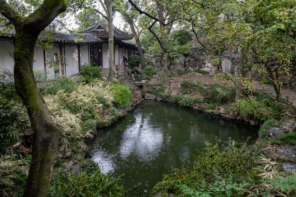 11月的江南水鄉(xiāng),初冬已至,天氣漸涼。近日清晨,披著絲絲煙雨,記者來(lái)到位于江蘇省蘇州市姑蘇區(qū)的滄浪亭景區(qū)。甫一拐入門(mén)前小街,未遇園門(mén),先見(jiàn)一池碧水環(huán)繞,讓人心曠神怡。