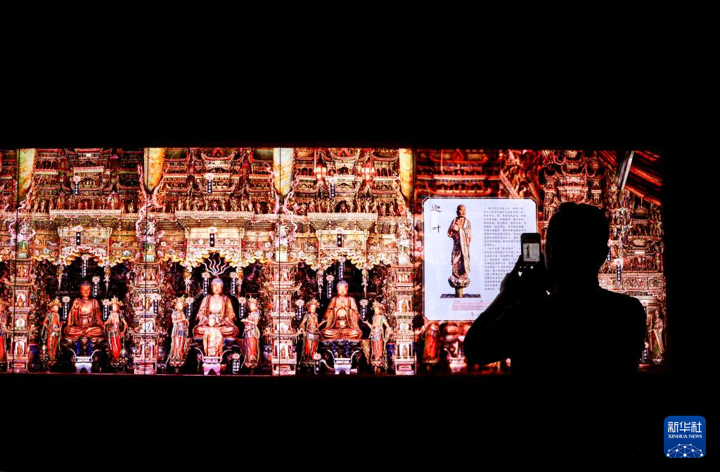2月27日,参观者在“既往未来——小西天文物撷珍与悬塑艺术特展”的“无量之境”展台拍摄。