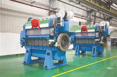 图为我国首型高替代率甲醇燃料船用中速机。