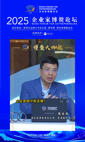 在12月4日举办的2025企业家博鳌论坛主论坛演讲中,海尔集团董事局主席、首席执行官周云杰用三个“新”解码这个时代命题——新链接:从“拥有”到“共享”;新机遇:在“不确定”中构建“确定性”;新生态:在“机遇”中构建生生不息的进化生态。