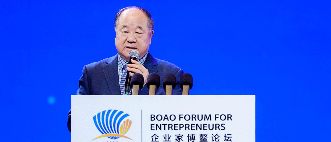 12月2日至5日,2025企业家博鳌论坛系列活动在海南博鳌举办。在12月4日举办的主论坛上,中国作家协会副主席、诺贝尔文学奖获得者、著名作家莫言发表演讲,并诗贺企业家博鳌论坛举办十载。作为论坛的老朋友,莫言回忆五年前参加论坛时的场景,感慨这几年的变化日新月异。他以“两块砖墨讯、五年足迹、千万善心”为题,分享了五年来的心路历程。