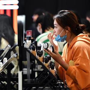 2022年1月3日,顧客在海口日月廣場免稅店選購化妝品。 新華社記者 郭程 攝