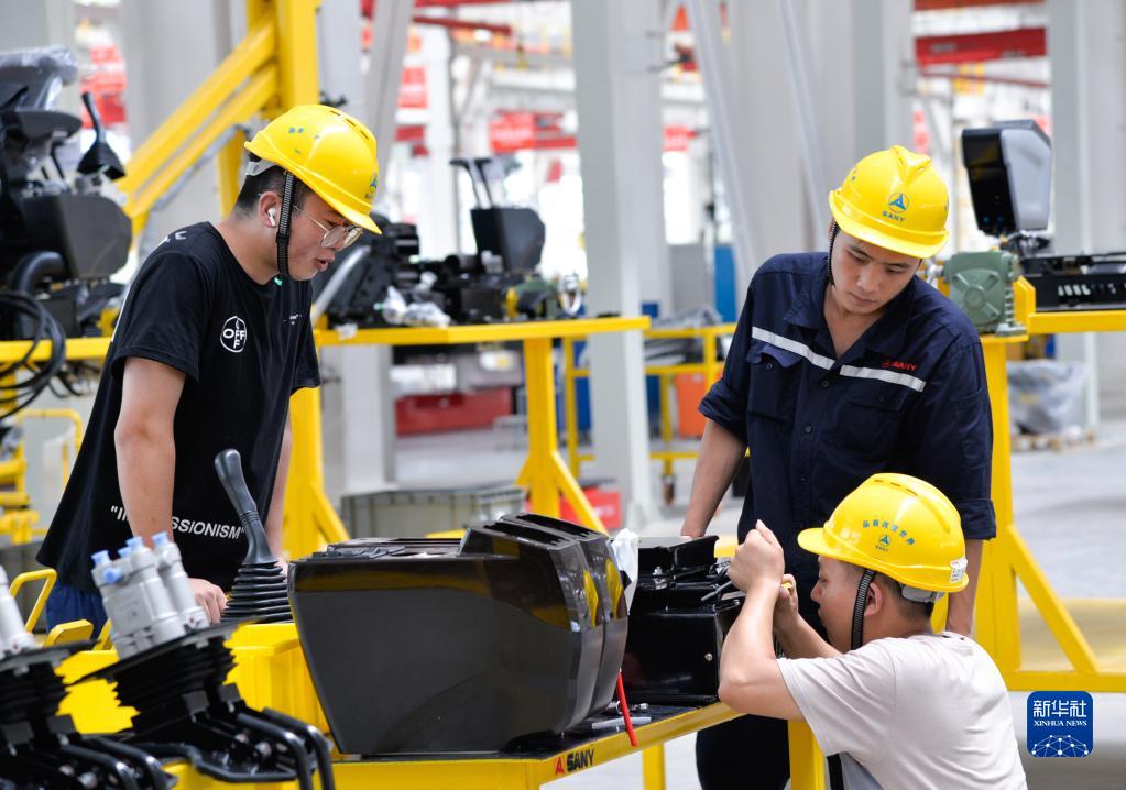 工人在位于重慶兩江新區的三一集團西南地區首個智能化“燈塔工廠”項目內作業(2021年7月19日攝)。新華社記者 徐欽 攝