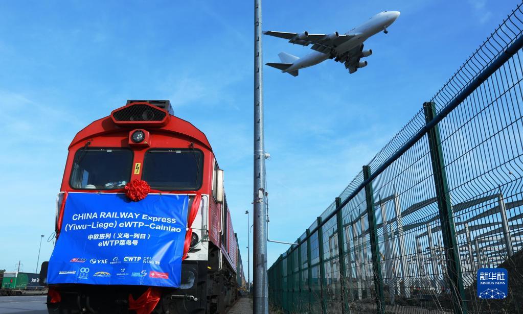 2019年10月25日,滿載著82個標準箱的中歐班列(義烏—列日)“世界電子貿易平臺(eWTP)菜鳥號”首趟列車抵達比利時列日物流多式聯運貨運場站。新華社記者 潘革平 攝
