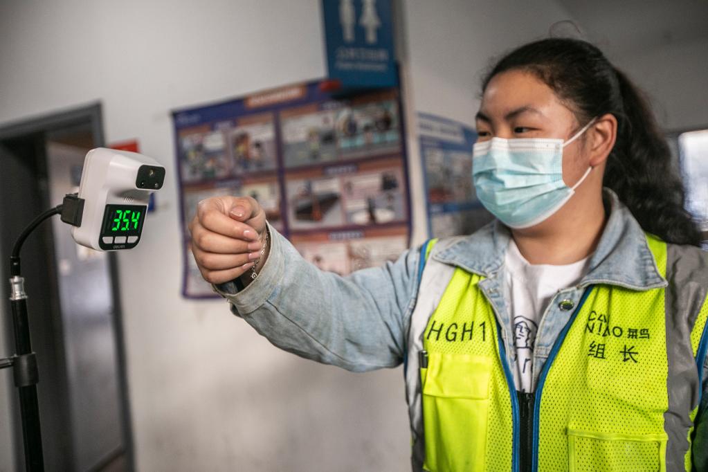 3月12日,菜鳥杭州下沙保稅倉工作人員在進入園區前亮碼、測溫。(圖片由采訪單位提供)