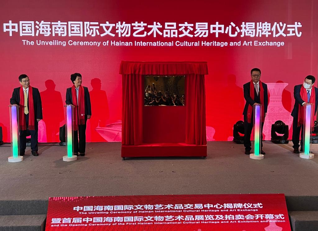 1月28日,中國海南國際文物藝術品交易中心在三亞揭牌成立。(新華社記者趙穎全 攝)