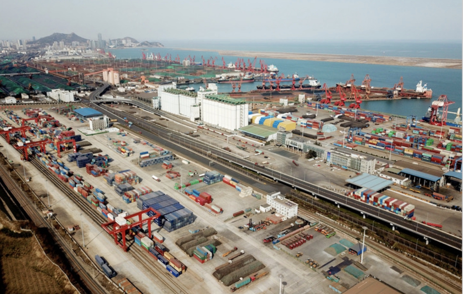 3月7日,大批出口商品車在山東港口煙臺港集結等待裝船(無人機照片)。新華社發(唐克攝)