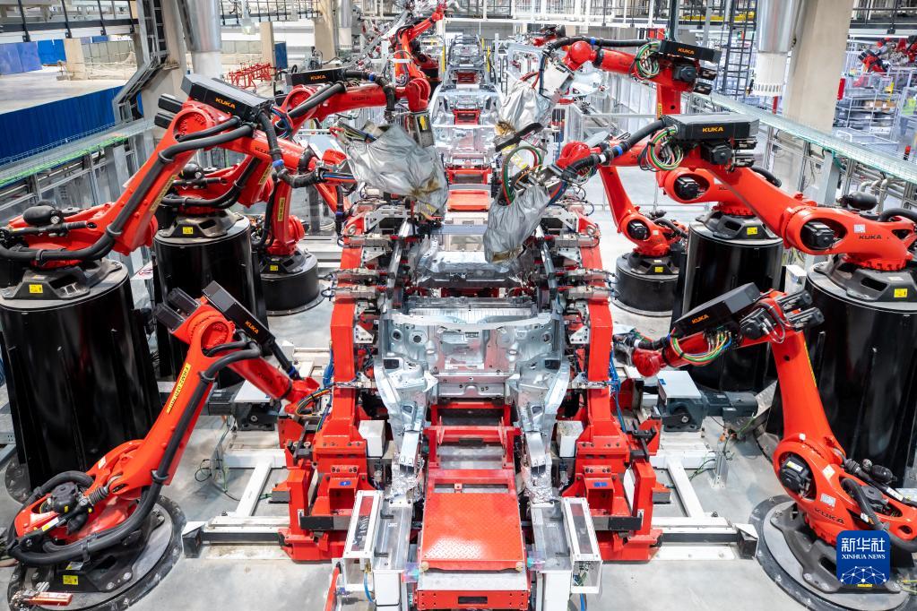 這是特斯拉上海超級(jí)工廠生產(chǎn)制造內(nèi)景(資料照片)。新華社發(fā)(采訪對(duì)象供圖)