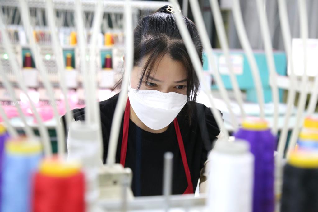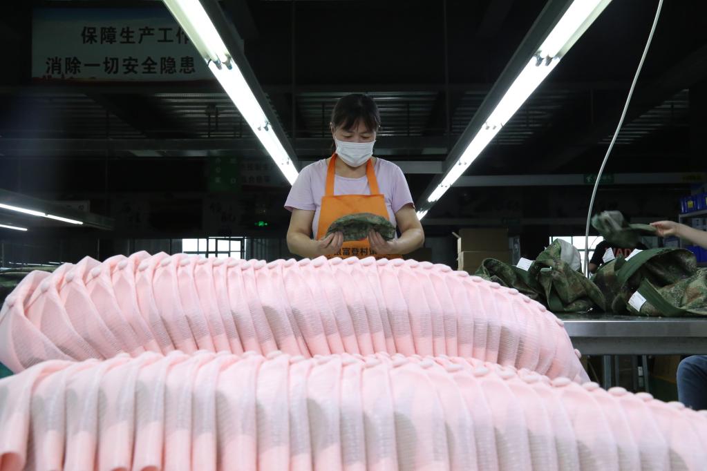 河南淮陽瑞能服帽生產車間。(新華社發)