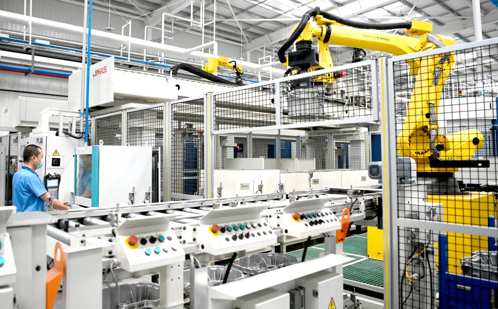 法士特西安高智新公司變速器零件數(shù)字化生產(chǎn)線生產(chǎn)現(xiàn)場。新華社記者劉瀟 攝