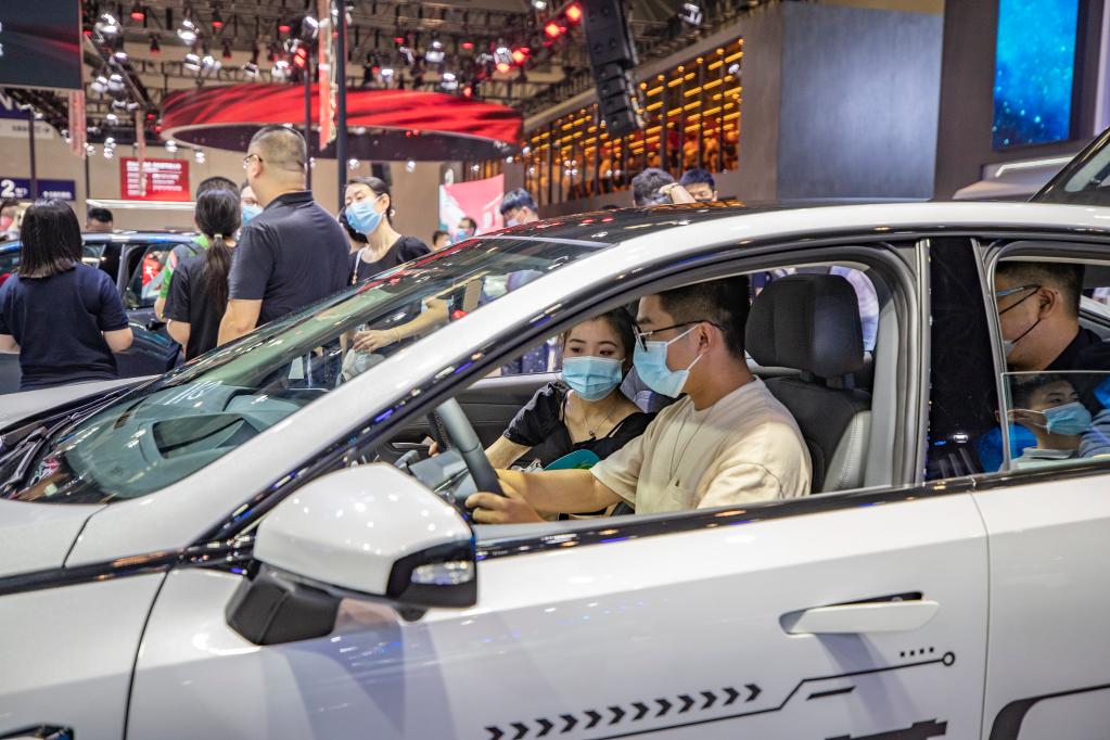 6月25日,觀眾在2022重慶車展上了解一款新能源汽車。新華社記者 黃偉 攝