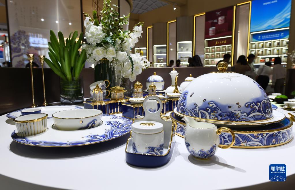 參展商深圳國瓷永豐源股份有限公司展出的瓷質餐具(7月26日攝)。新華社記者 楊冠宇 攝