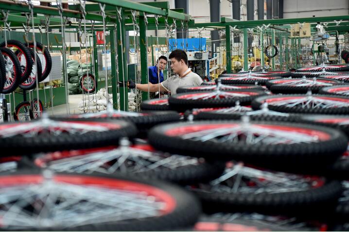 9月8日,在安徽省蚌埠市五河縣自行車產(chǎn)業(yè)園一家自行車生產(chǎn)企業(yè)內(nèi),工人在生產(chǎn)線上忙碌。 新華社記者 黃博涵 攝