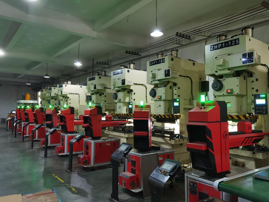 2022年10月19日,在慈溪市玉龍電器有限公司沖壓車間內(nèi),機(jī)械設(shè)備正在生產(chǎn)取暖器前板。新華社記者 顧小立 攝