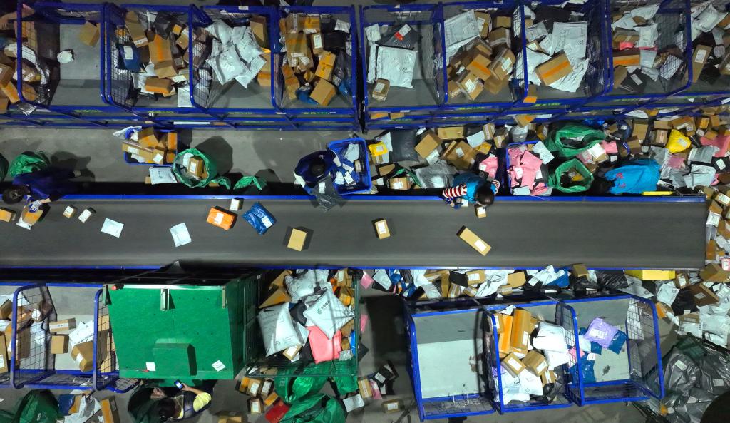 “雙11”過后,全國各地的物流企業迎來快遞物流高峰。新華社發(曹正平 攝)