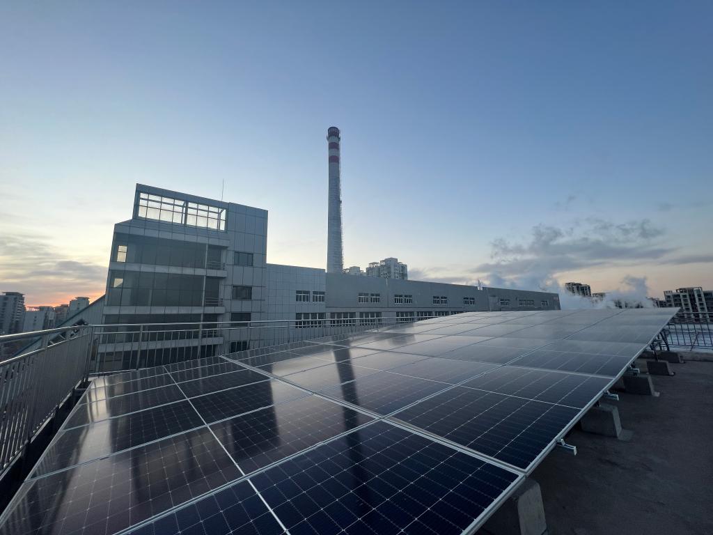 天津市津安熱電有限公司北辰供熱服務中心屋頂的太陽能供暖設備。采訪對象供圖