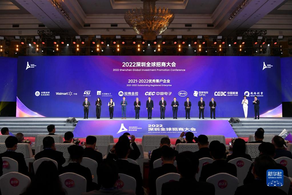 12月9日,2022深圳全球招商大會現場為優秀落戶企業頒牌。新華社記者 梁旭 攝