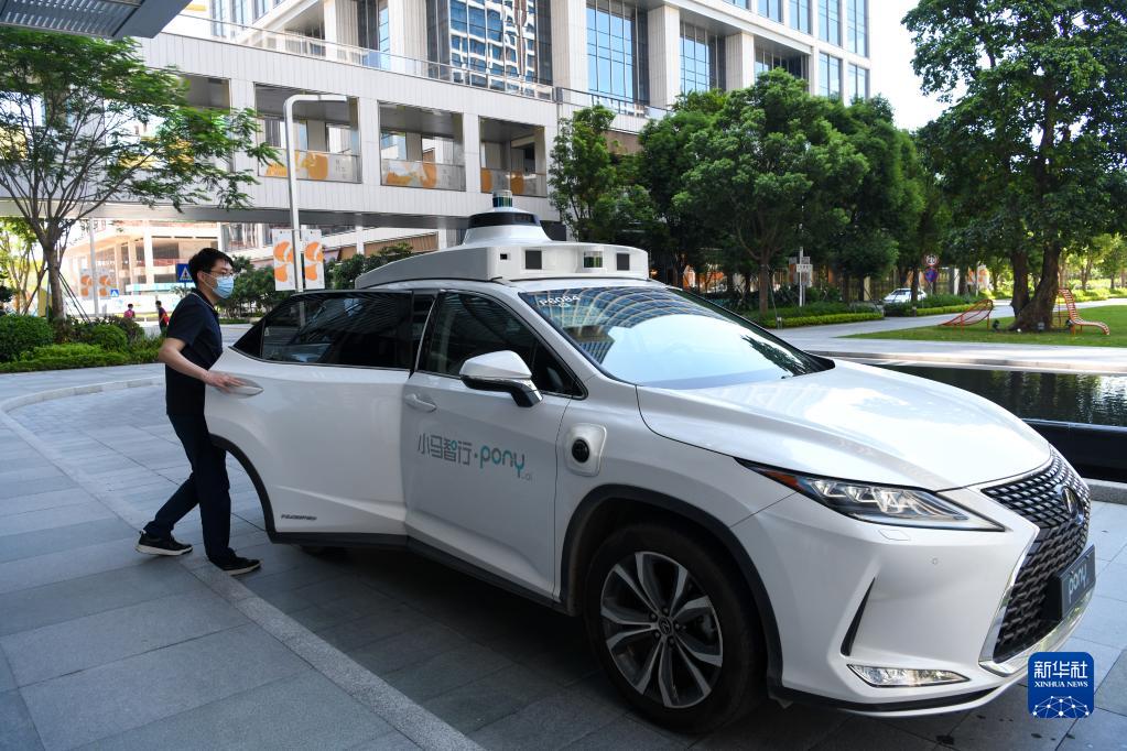 在深圳前海,一名乘客體驗(yàn)乘坐小馬智行自動駕駛汽車(2022年8月1日攝)。新華社記者 梁旭 攝