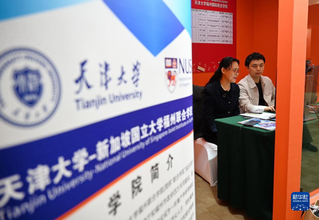1月31日,天津大學福州國際聯(lián)合學院老師在2023年“好年華 聚福州”春季高校畢業(yè)生大型招聘會現(xiàn)場視頻面試專區(qū)向應聘者介紹該校情況。新華社記者 林善傳 攝