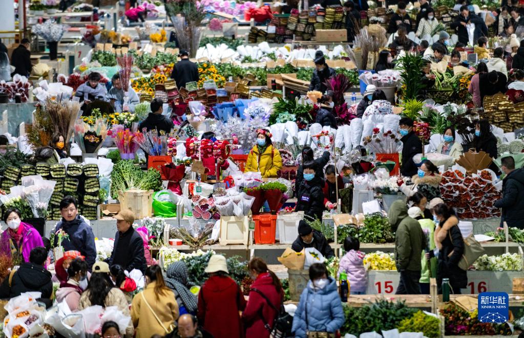 1月27日,人們在斗南花市內(nèi)買花。當(dāng)日是大年初六,位于云南省昆明市的斗南花市內(nèi)人頭攢動,人們逛花市、買鮮花,歡度假期。新華社記者 陳欣波 攝