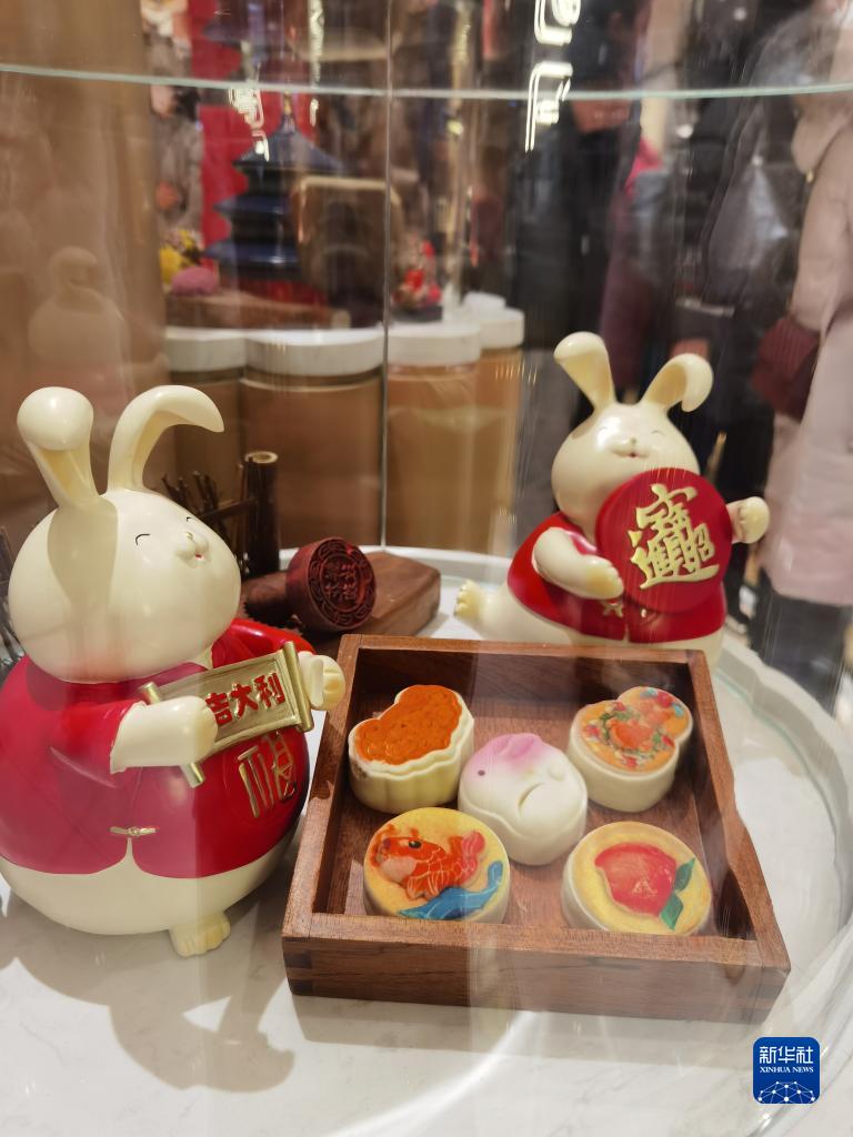 2月1日在北京稻香村“零號店”拍攝的“福兔獻瑞”系列糕點。 新華社記者 謝希瑤 攝