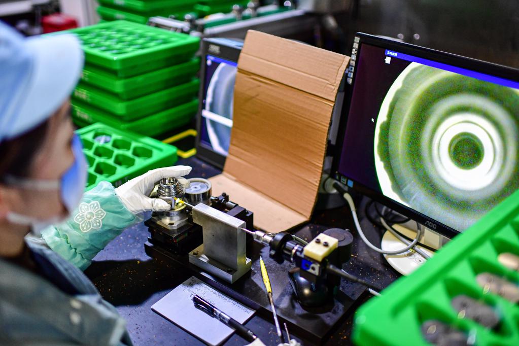 在綿陽富臨精工股份有限公司,一名工人通過內窺鏡檢測企業(yè)生產的精密設備。新華社記者張超群 攝