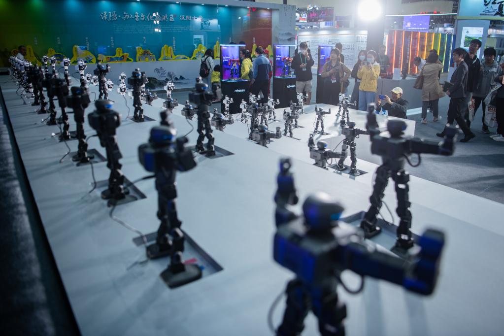 圖為在第二屆中國(武漢)文化旅游博覽會上跳舞的音樂機器人。新華社記者伍志尊 攝