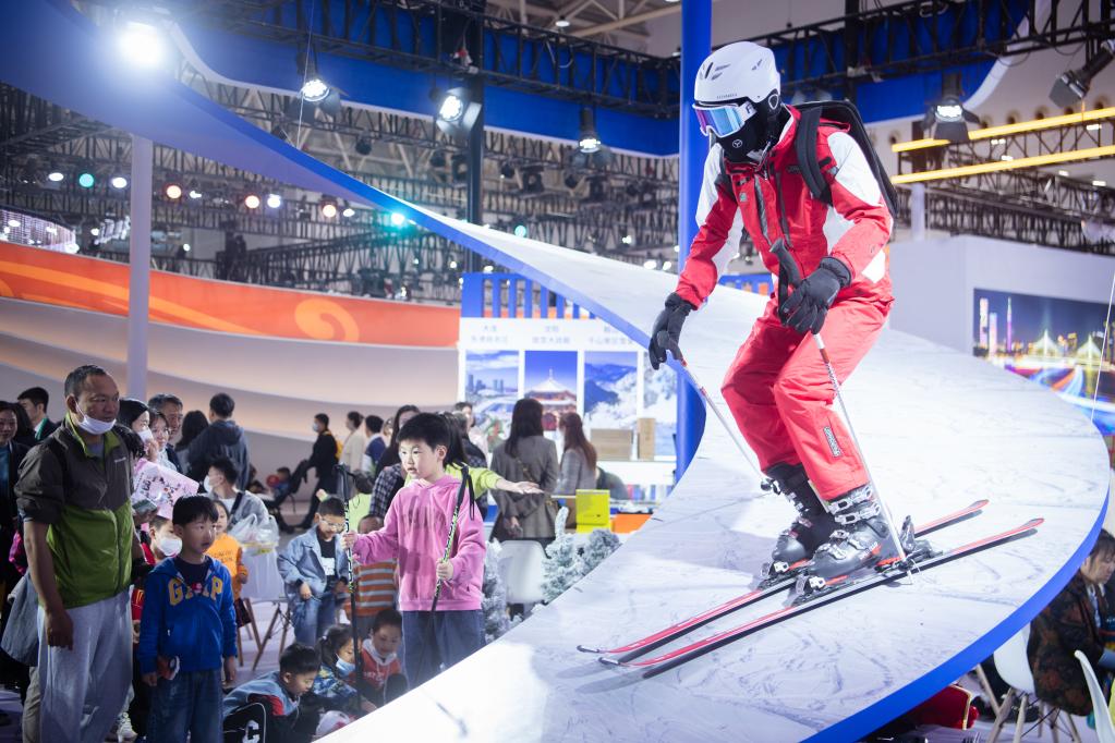 冰雪運動、山地索道、攀巖等玩法也紛紛亮相。遼寧館的旋轉雪道上,游客們握著雪杖、踩著滑雪板,競相拍照打卡。湖北恩施等南方城市的冰雪資源也逐漸“盤活”,帶著最新、最潮的裝備來參展。