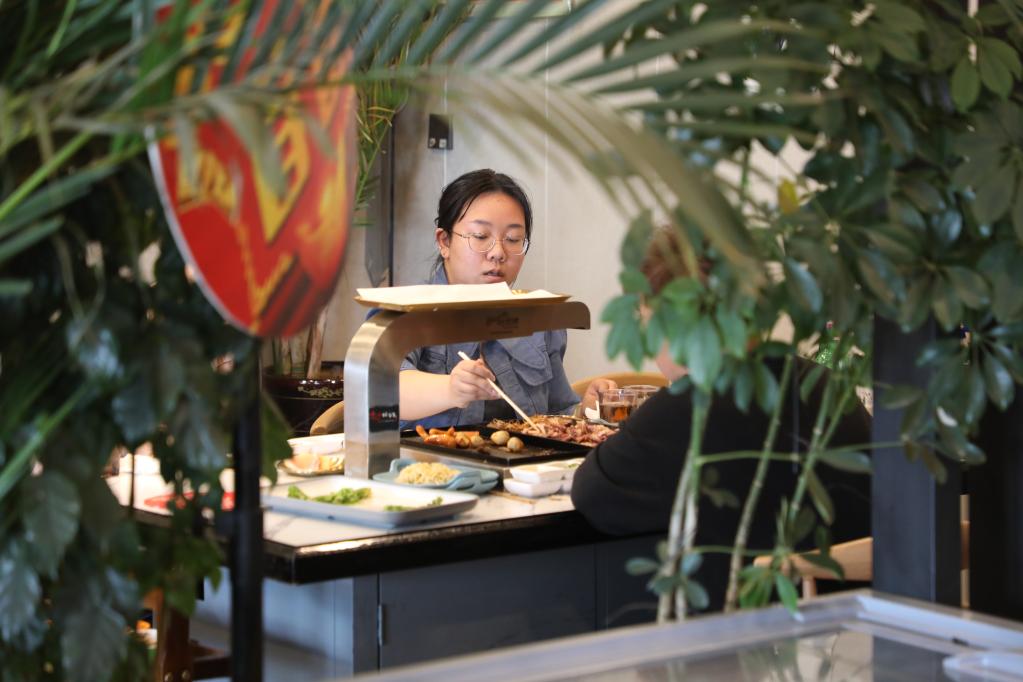 在齊齊哈爾市一家烤肉店,市民正在用餐。新華社記者唐鐵富 攝
