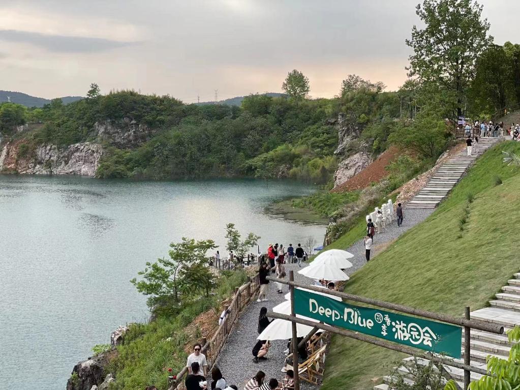 位于當地紅廟村的一家咖啡館坐落在湛藍的天然湖水和冷冽的巖石之間,被網友稱為“小冰島”,其前身是處廢棄十幾年的礦山。經過一個年輕團隊的改造,在優越的自然風光中變身“網紅”打卡地,不到一年內累計接待游客35萬人次,最高單日接待量達8000人次,為紅廟村帶來600余萬元經濟收益。