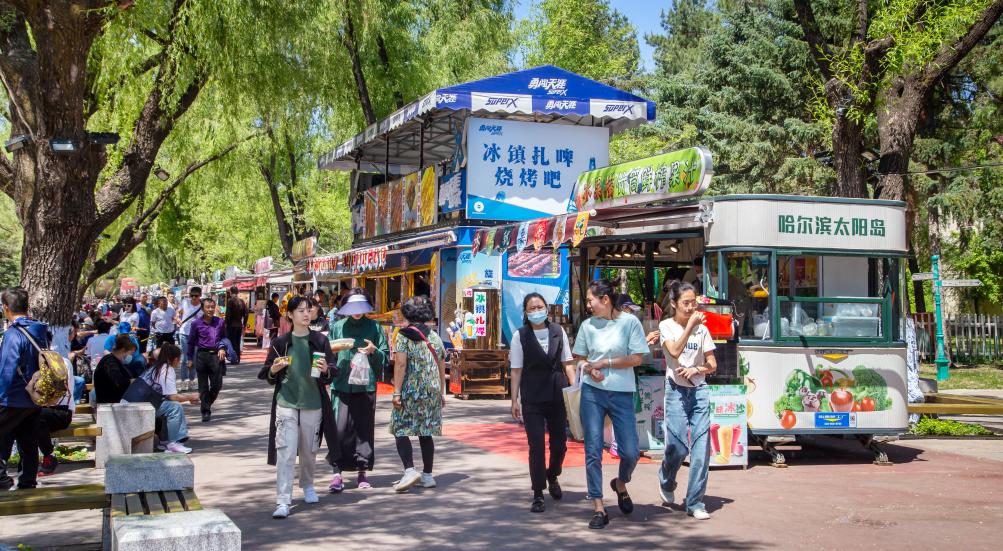 剛剛入伏,位于城市中心的江漫灘濕地——黑龍江哈爾濱太陽島風景區,來自全國各地的游客絡繹不絕,人們一邊品嘗特色冷飲,一邊拍照打卡,享受著夏日的愜意。
