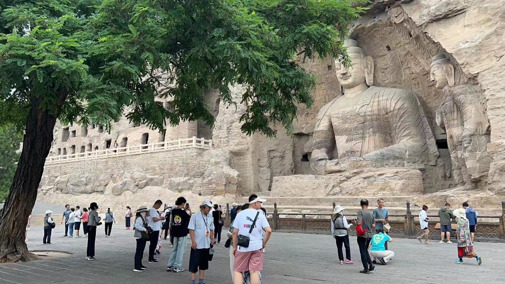 7月4日,游客們正在山西省大同市云岡石窟景區內參觀。新華社記者 解園攝