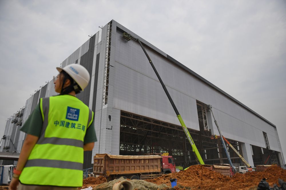 2023年8月15日,在位于四川省成都市雙流區的空中客車(成都)飛機全生命周期服務有限公司項目建設現場,工人在作業。新華社發(李向雨 攝)