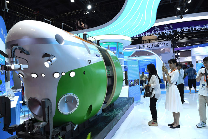 9月19日,觀眾在東博會上了解“奮斗者”號全海深載人潛水器模型。新華社記者 周華 攝