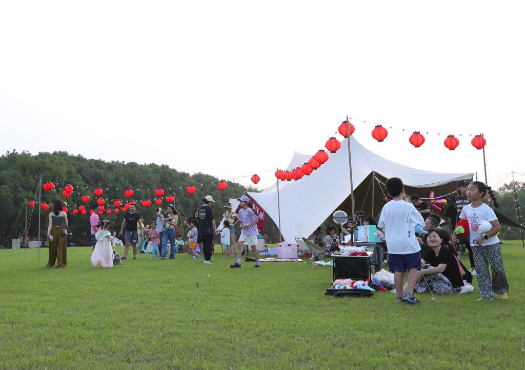 在上海松江區一處營地,市民游客在逛營地帳篷集市(9月29日攝)。新華社記者 方喆 攝