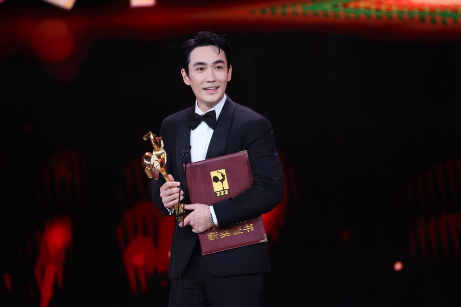 2022年11月12日,朱一龍憑借《人生大事》獲得第35屆中國電影金雞獎最佳男主角獎。新華社發(曾德猛攝)