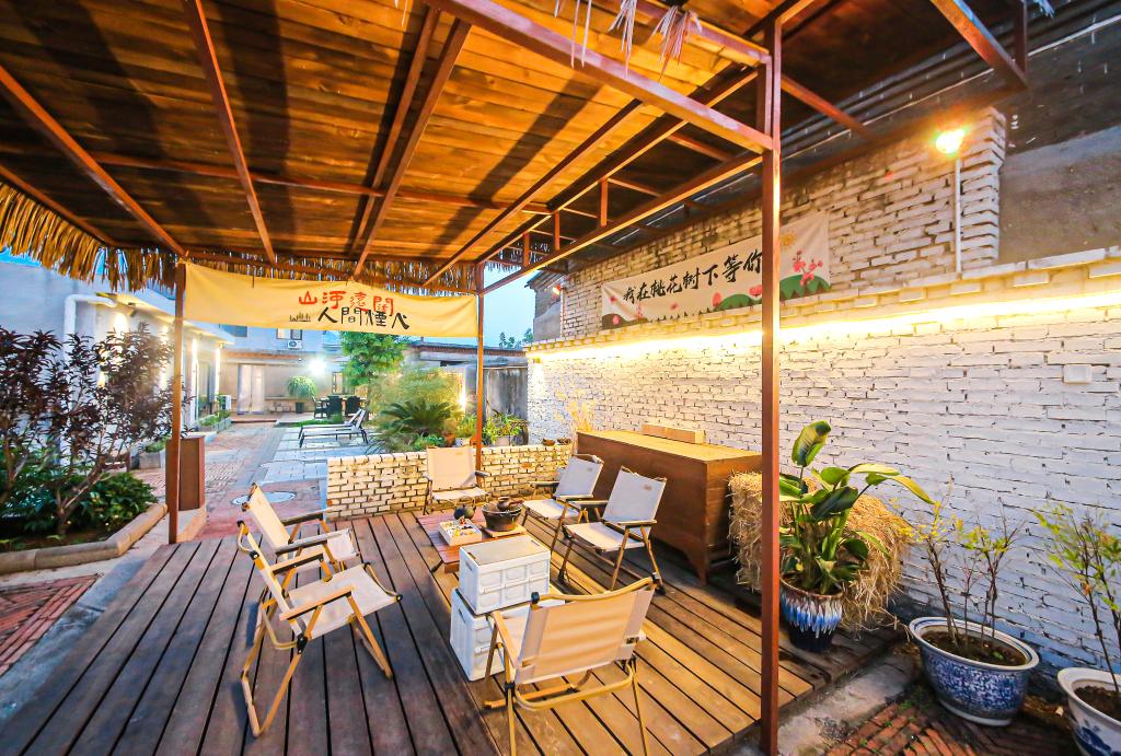 變化始于2019年。在區(qū)、鎮(zhèn)兩級(jí)的共同推動(dòng)下,“象外高臥”民宿作為招商選資項(xiàng)目落戶(hù)小戈廖村。在保留傳統(tǒng)建筑原有風(fēng)貌、格局的前提下,對(duì)房屋內(nèi)部進(jìn)行精細(xì)裝修,完善了餐廳、衛(wèi)生間、供排水管網(wǎng)等配套設(shè)施。經(jīng)過(guò)一番修繕,曾經(jīng)“灰頭土臉”的老石房變成了兼具時(shí)尚氣息和鄉(xiāng)土風(fēng)情的詩(shī)意棲居。