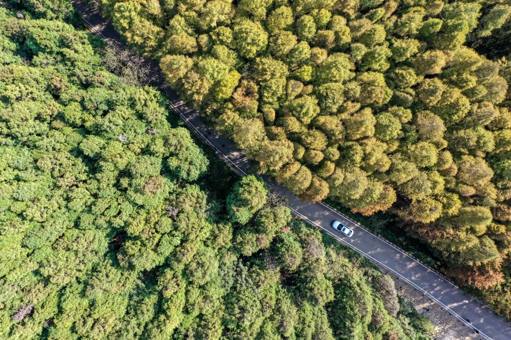 這是11月7日拍攝的“178環線”景色,一輛小汽車行駛在“178環線”上(無人機照片)。新華社記者唐奕 攝