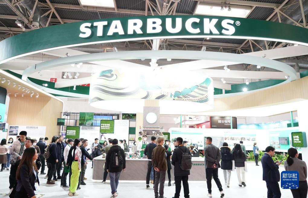 這是在首屆中國國際供應鏈促進博覽會健康生活鏈展區拍攝的星巴克展位(2023年11月28日攝)。新華社記者 任超 攝
