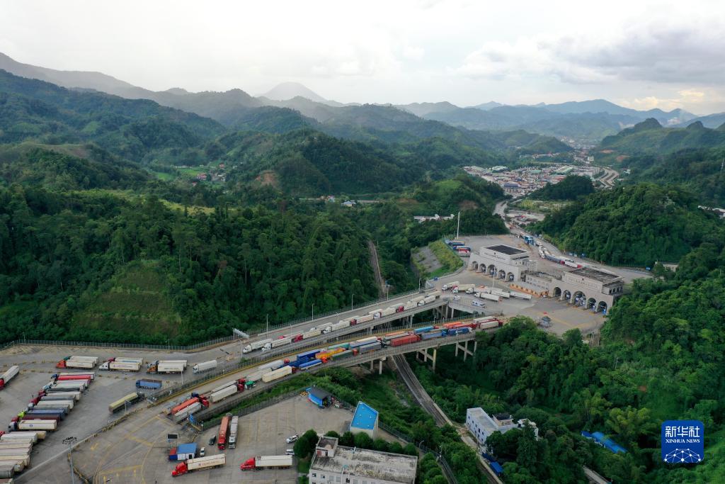 這是繁忙的廣西憑祥友誼關口岸(2023年9月9日攝,無人機照片)。新華社記者 曹祎銘 攝