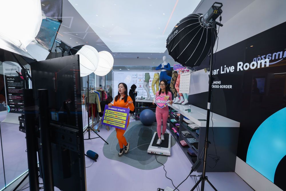 2023年11月23日,在浙江杭州舉行的第二屆全球數字貿易博覽會絲路電商館,跨境電商進行直播銷售。新華社記者 徐昱 攝