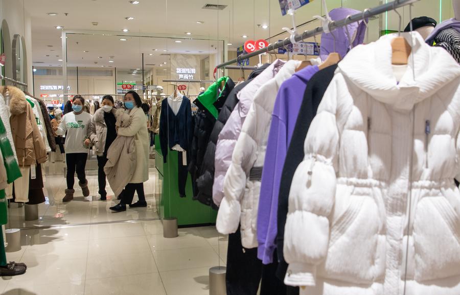 2023年12月23日,在位于重庆解放碑商圈的标志性商场——重百大楼内,市民游客选购商品。新华社记者 唐奕 摄
