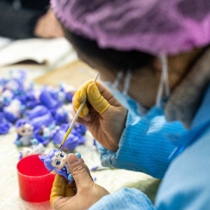2月8日,湘潭综合保税区的湖南桑尼森迪玩具制造有限公司,工人在制作“敖丙”手办。新华社记者 陈思汗 摄