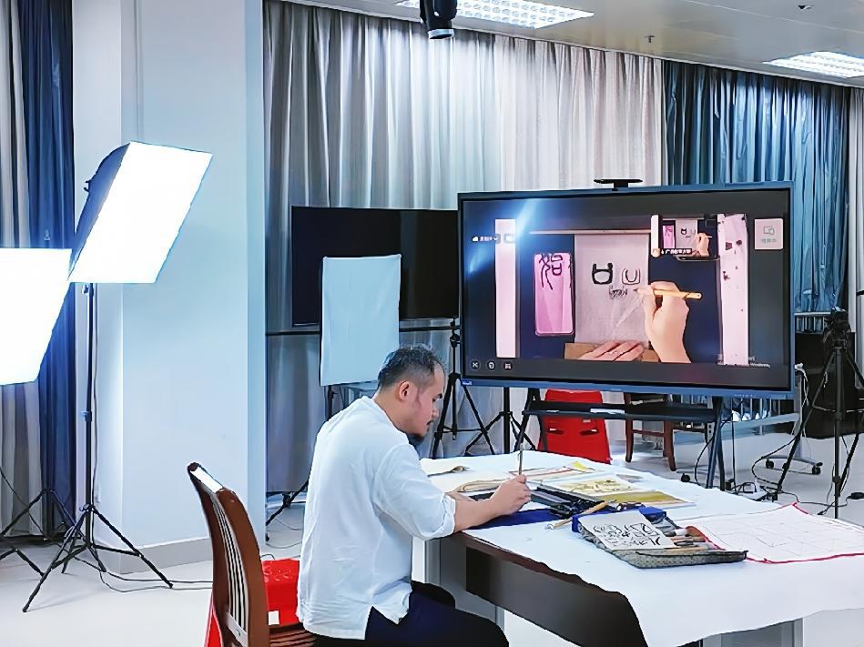2025年6月4日,广西老年大学的书法课老师正在进行网上教学。新华网 牙举成 摄